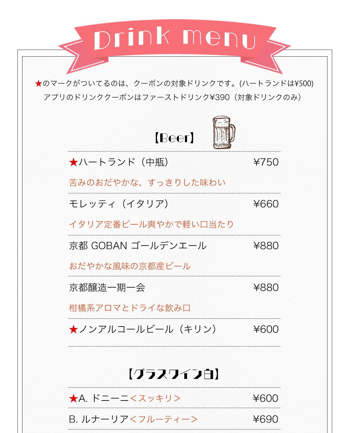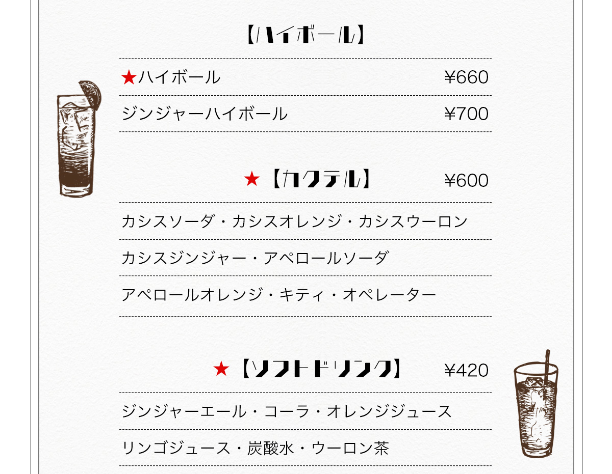 - (料理L.O. 22:00 ドリンクL.O. 22:30)