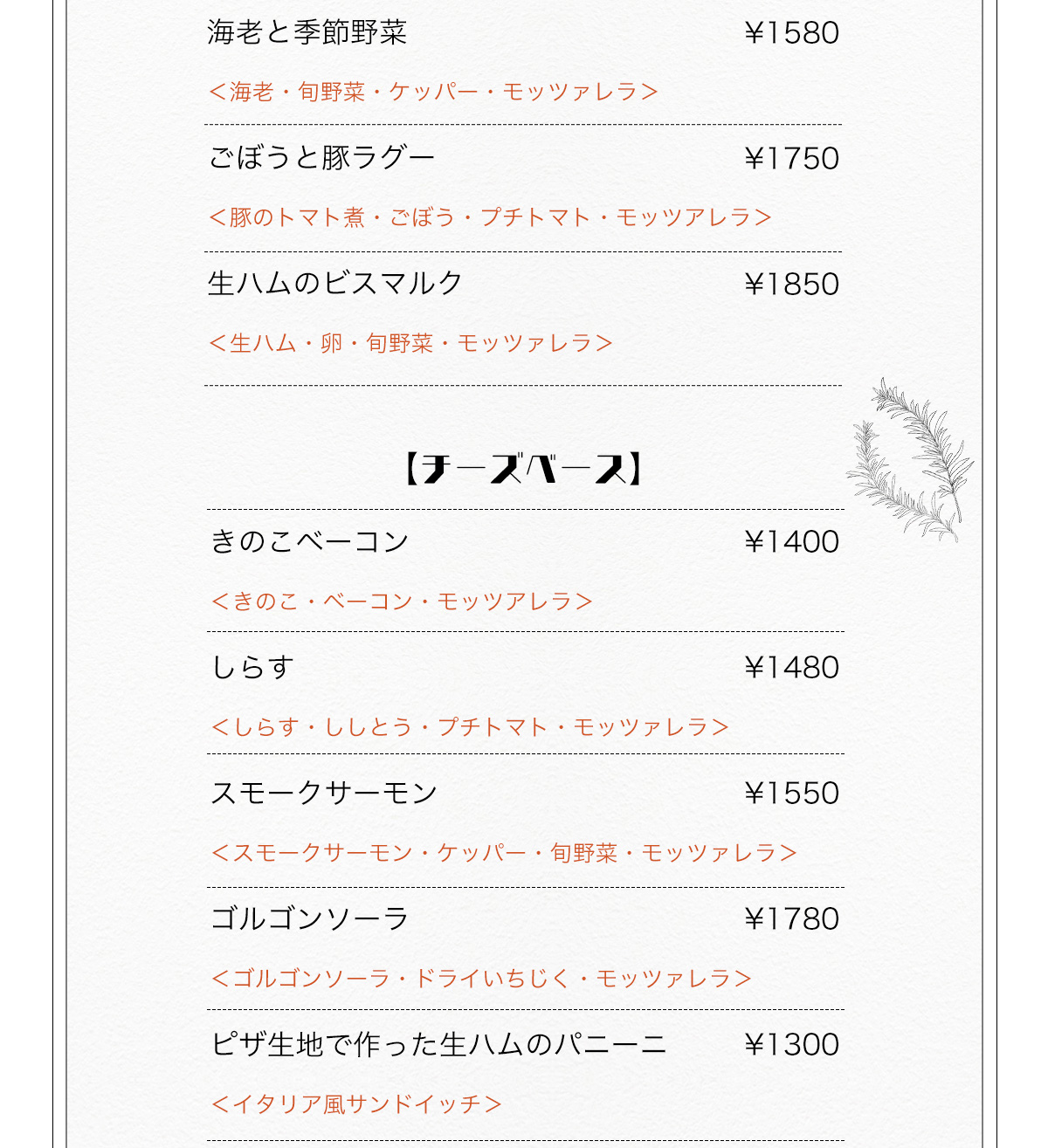 - (料理L.O. 14:00 ドリンクL.O. 14:00)