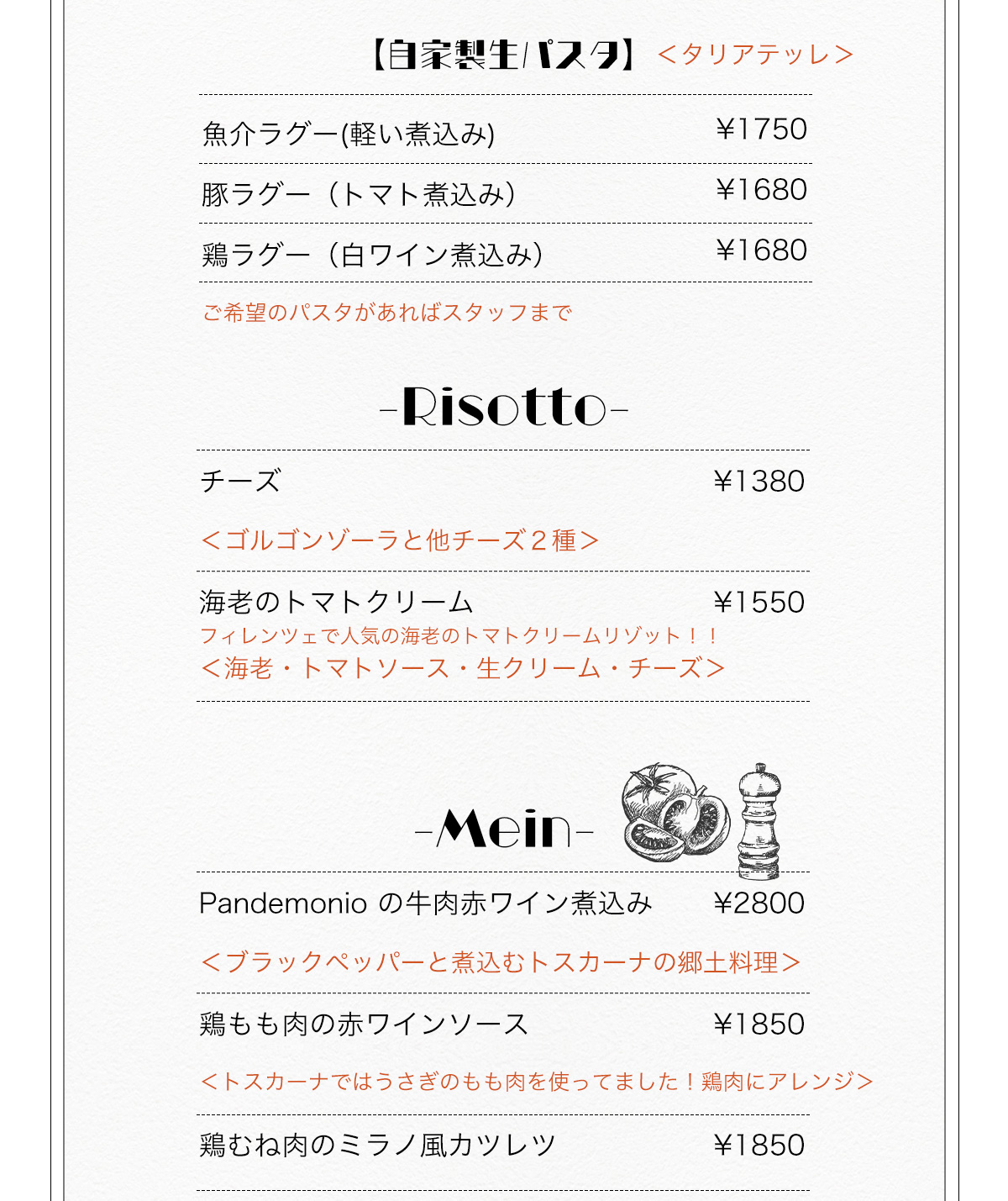 京都山科、椥辻駅徒歩10分にあるトスカーナ料理と野菜を使ったイタリア料理店
